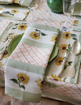 The Provence Poiriers Sunflower pattern was created to highlight our beloved sunflowers. There is nothing as beautiful as seeing the sunflowers in their glory at Provence Poiriers in late July. There are additional images of flora from around the property including grapes, iris, olives, pears and rose. We hope that you enjoy this fabric which has been thoughtfully produced and printed in Provence.