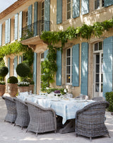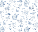 Provence Poiriers Toile en Bleu features vignettes of Le Mas des Poiriers, the village of Villeneuve-les-Avignon, our pears and pear trees and the sanglier (wild boar) and fox that we often see on property. The fabric has been produced and printed in France. We hope that you enjoy this charming and sentimental pattern!